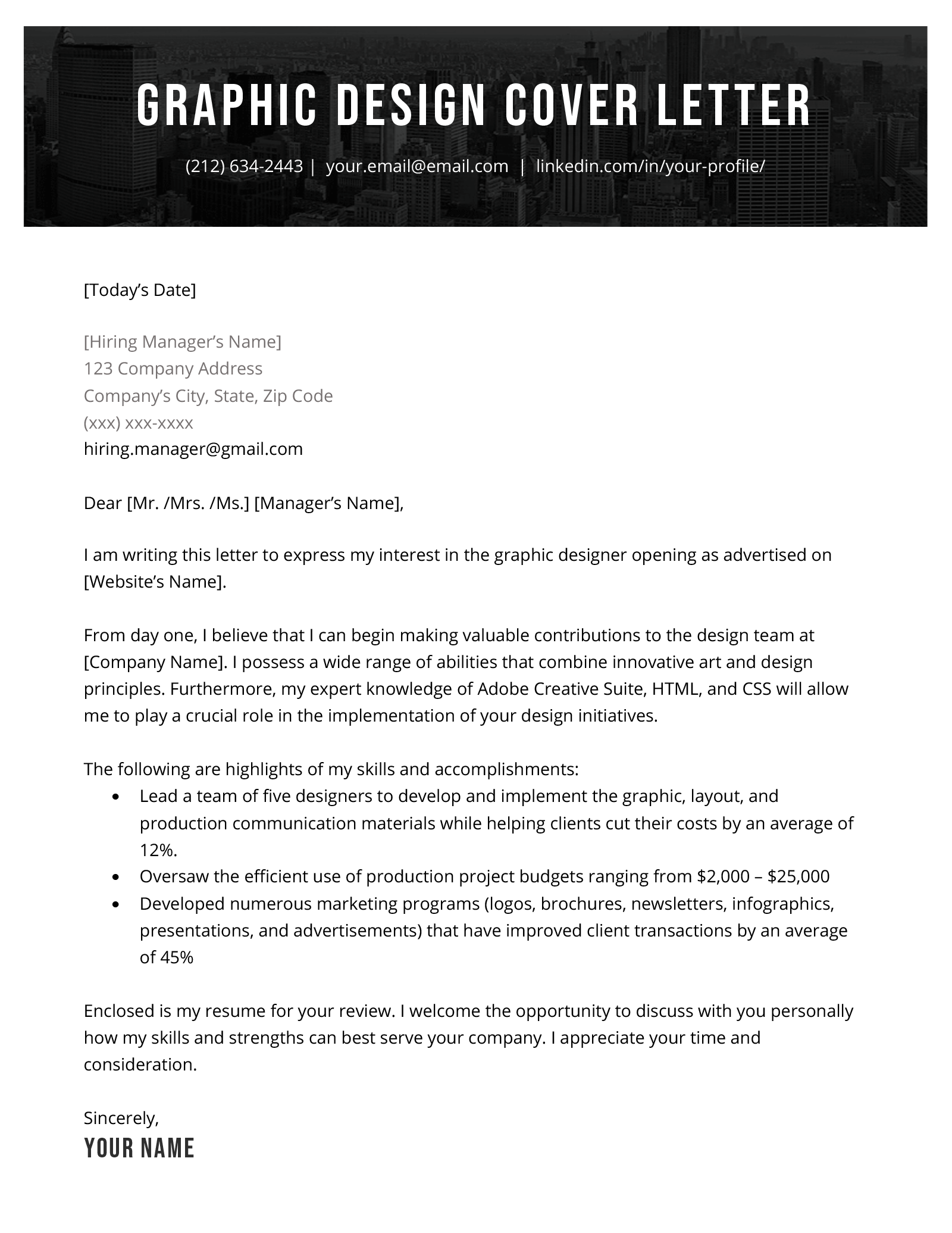 Graphic designer cover letter template