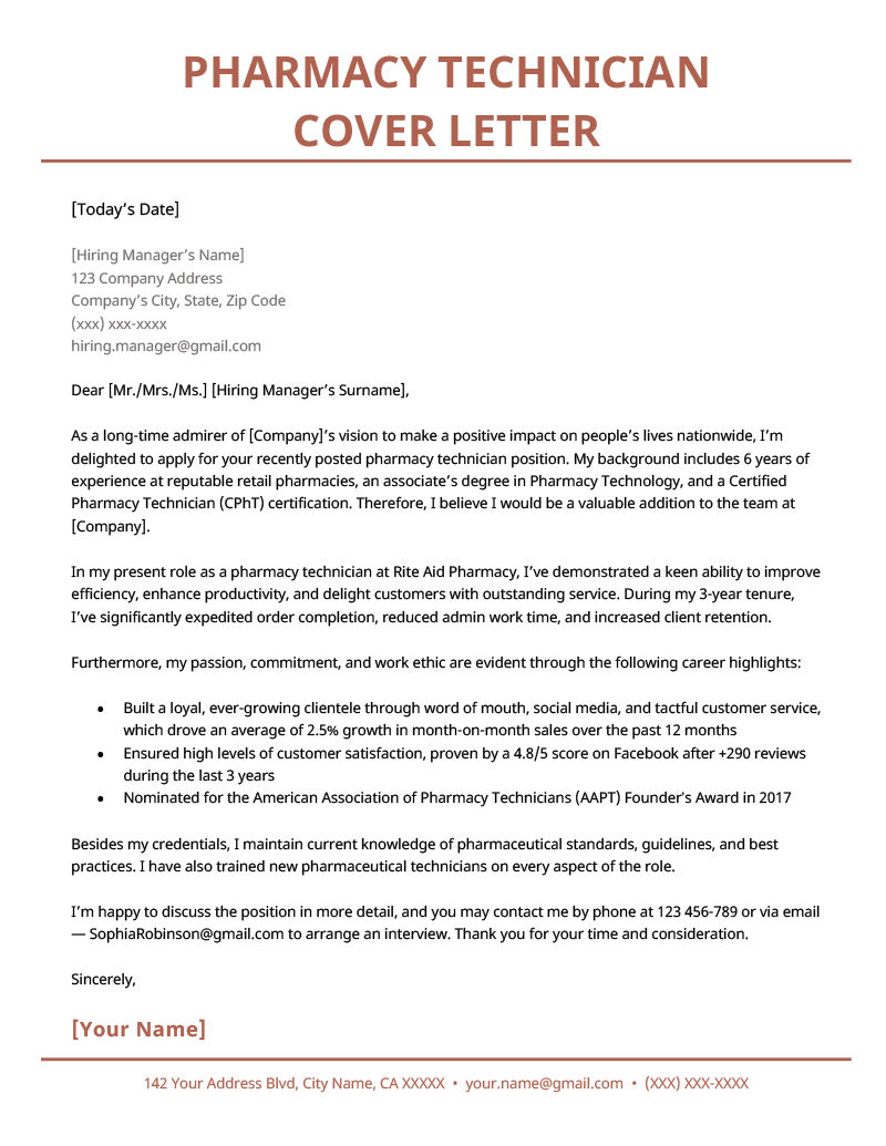 Pair your pharmacy technician resume with a stellar cover letter to prove you’re a great match for the job.