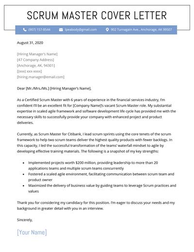 Scrum Master Cover Letter