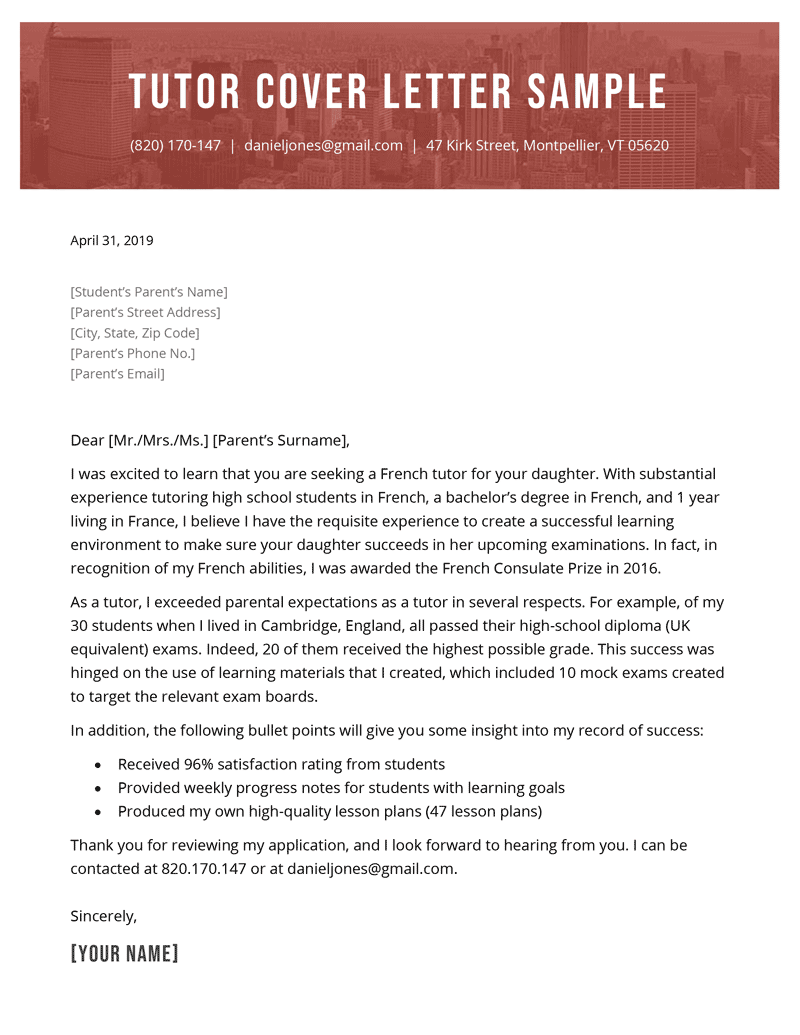 Tutor cover letter tips