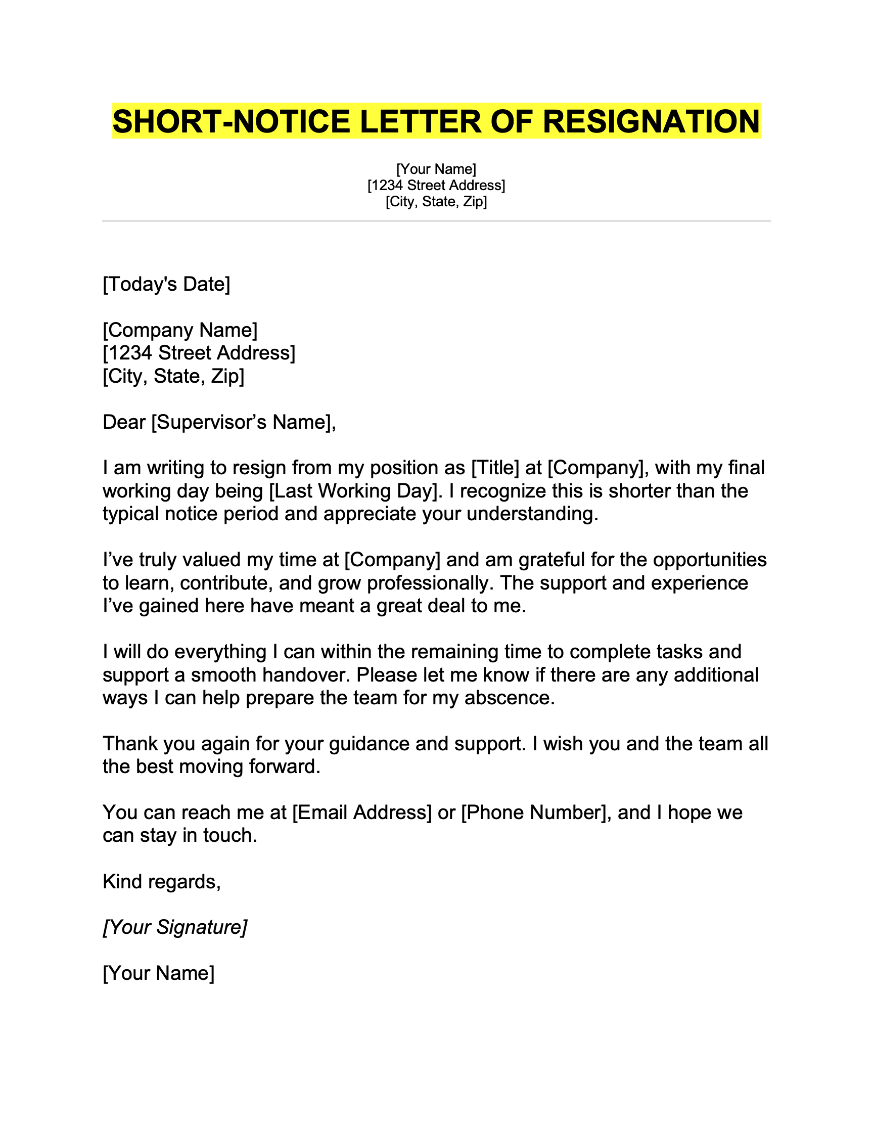 Short-notice resignation letter template (copy & paste)