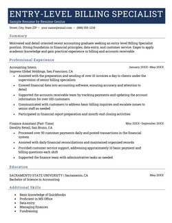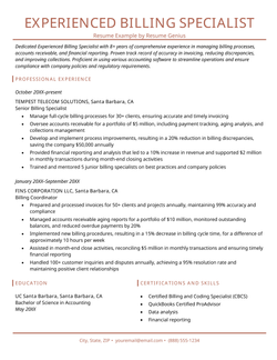 Billing Specialist Resume Examples & Template