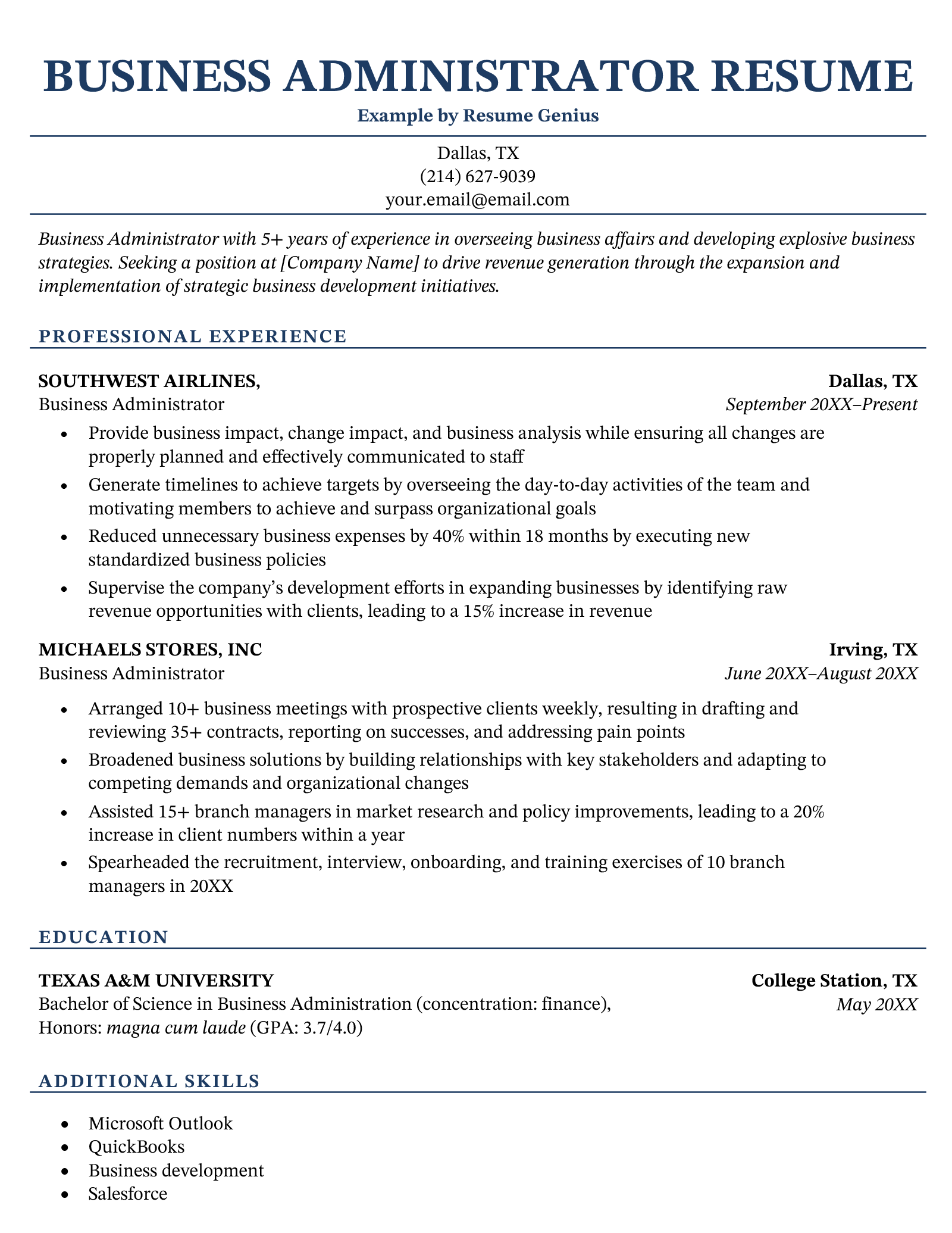 Stand out to employers with a clear, well-organized business administration resume.