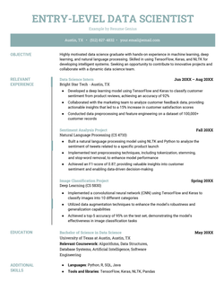 To help you write an effective resume that’s targeted to the specific position you’re applying for, we’ve put together examples of data scientist resumes tailored for specific industries and roles.