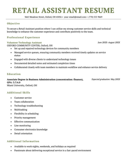 Here are more resume samples to help you get a better idea of what your retail resume should look like:
