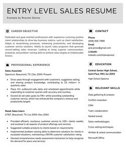 - Highlights skills: Emphasizes customer service experience that’s directly relevant to success in sales.
