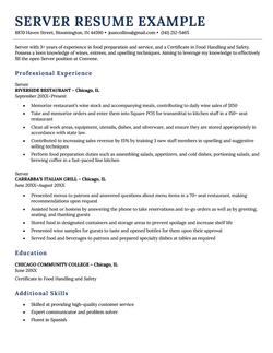 - Server resumes by job title