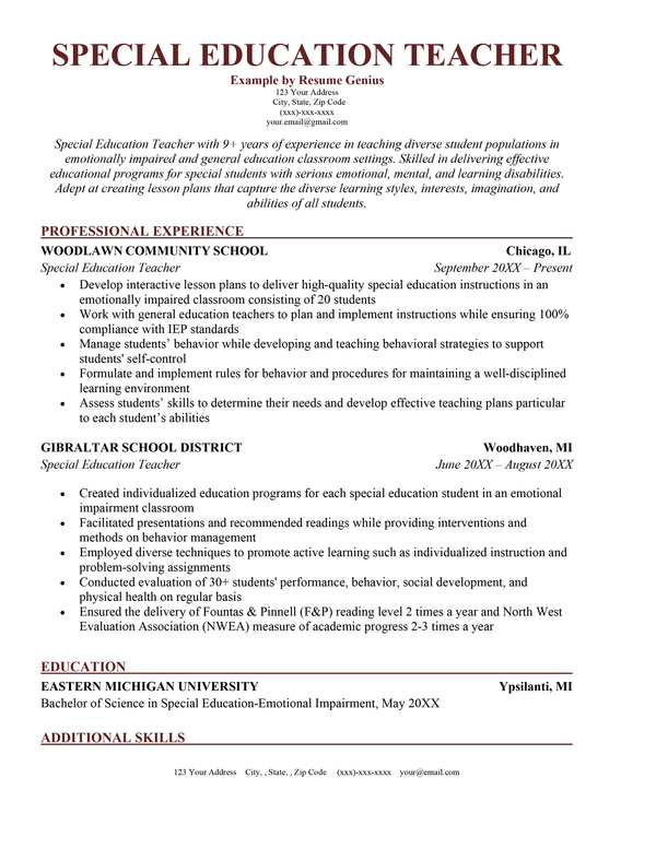 Writing your resume for special education teaching isn’t always easy. As a special educator, you know your skills are diverse and your daily responsibilities vary widely. It’s difficult to simplify all that you do in a one-page resume.
