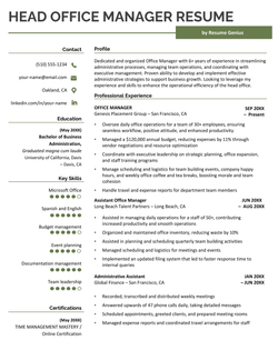 If you’d like to work as a front office manager, you’ll need a resume like this example:
